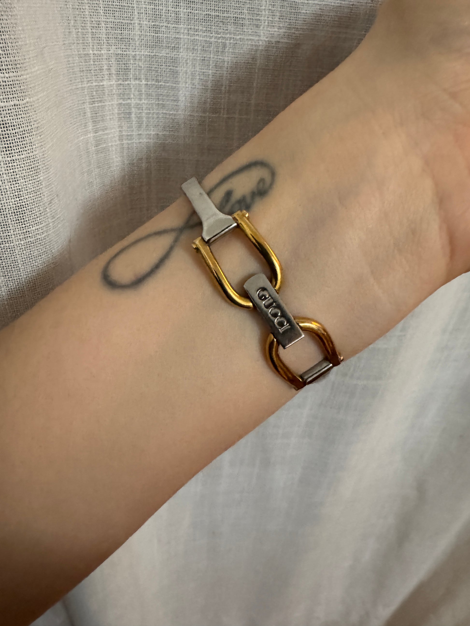 2000s GUCCI 1500L Black Dial Two Tone Bangle Watch