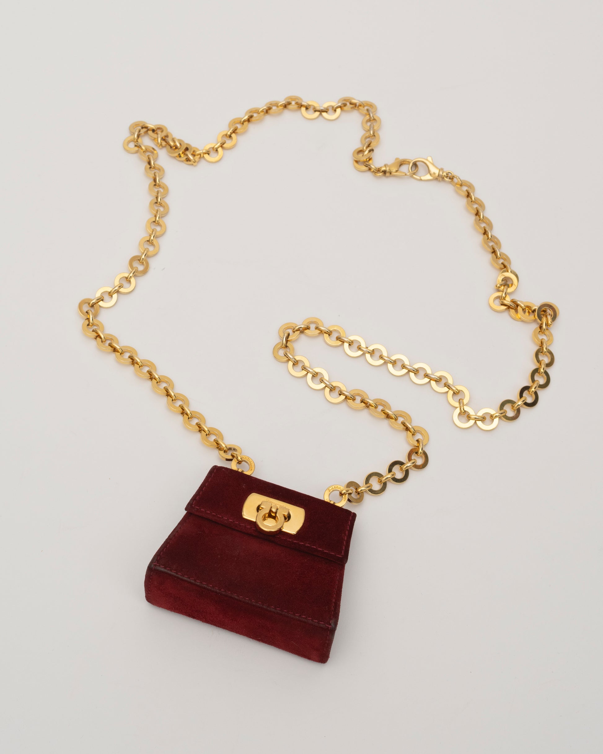 2000s SALVATORE FERRAGAMO Maroon Suede Gancini Mini Bag
