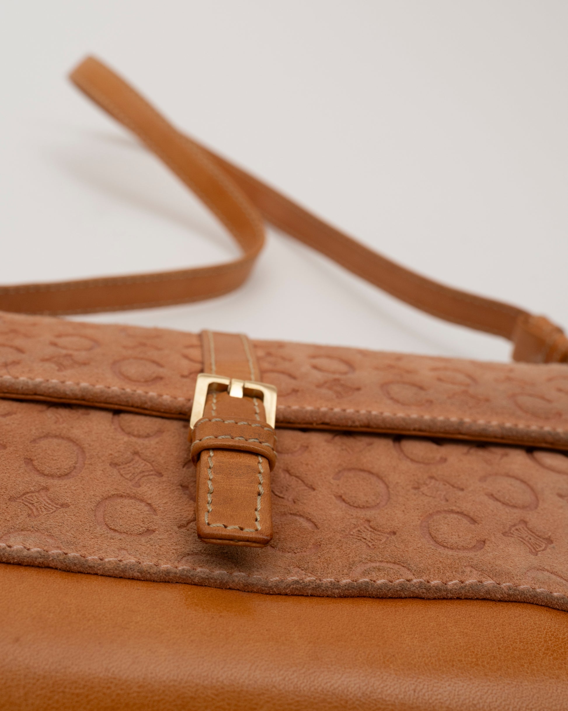 90s CELINE Macadam Suede Flap Shoulder Bag