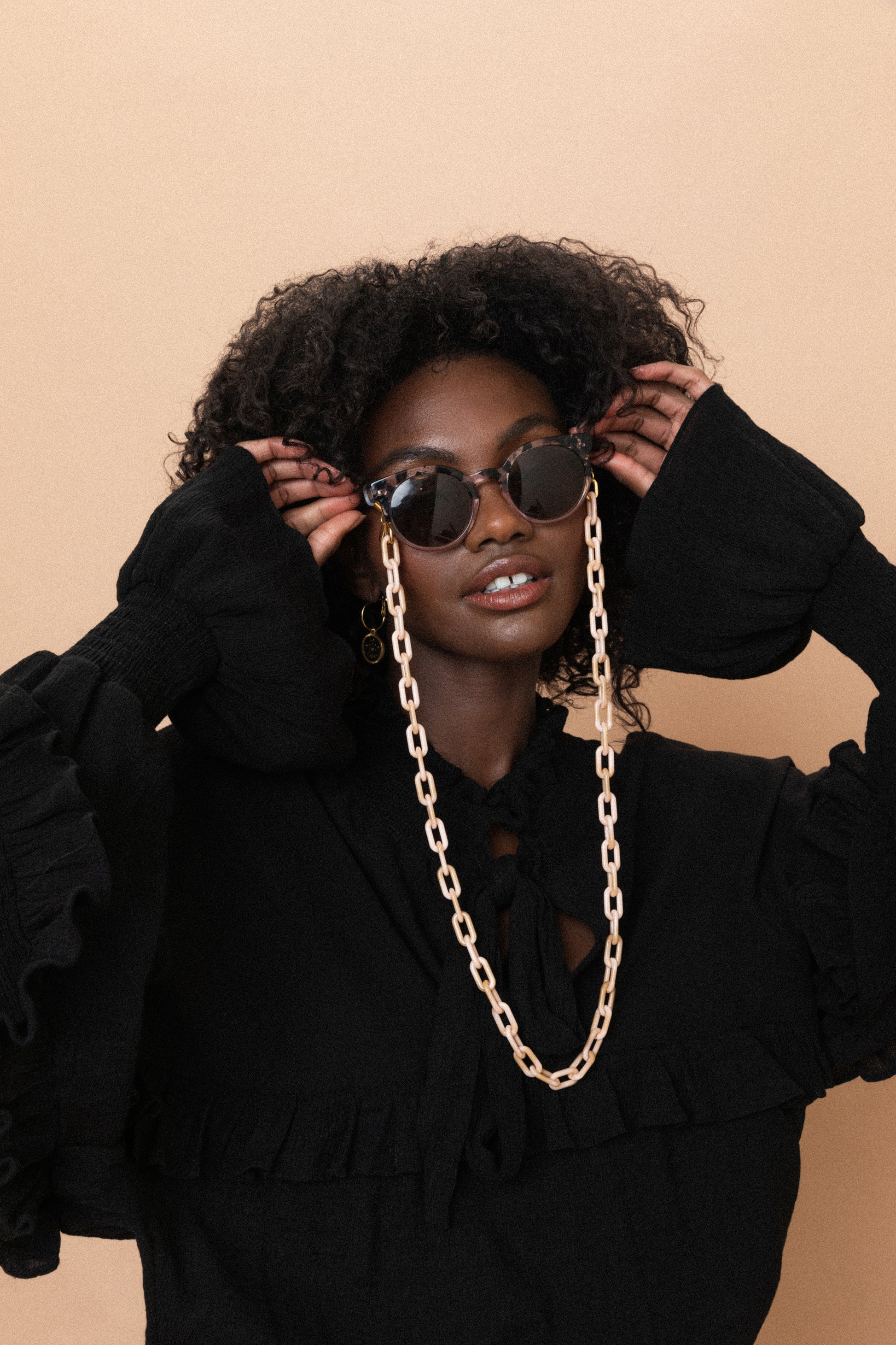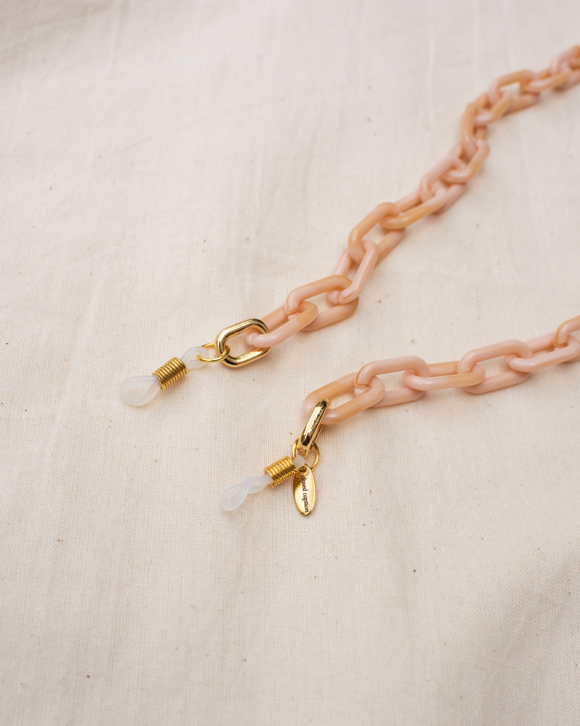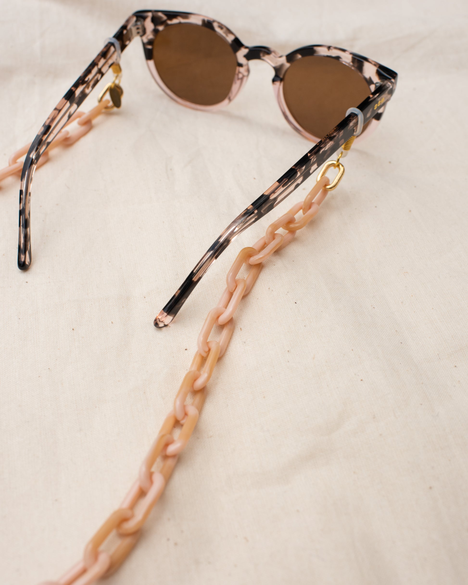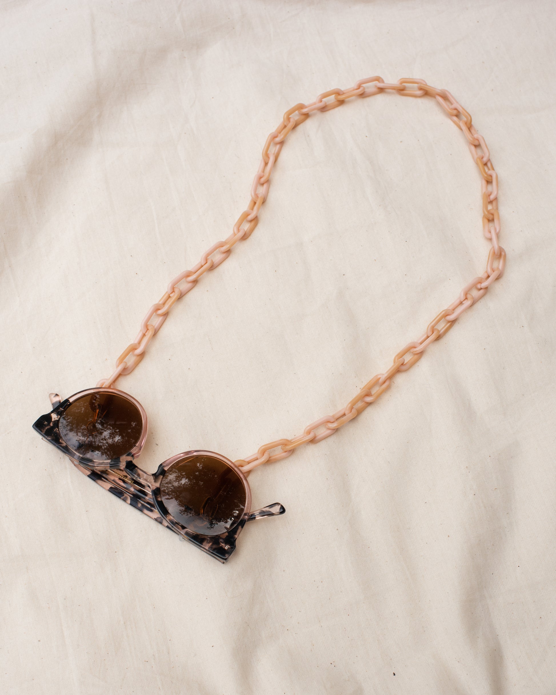 A romantic and playful addition to any outfit, this eyewear chain is perfect for keeping your rose-colored glasses close at hand. The chunky design is eye-catching and fun, while the pastel color is whimsical and oh-so you. Whether you're spending a day at the beach with your favorite book or you're on a romantic picnic date in the park with your babe, this accessory adds completes any look.