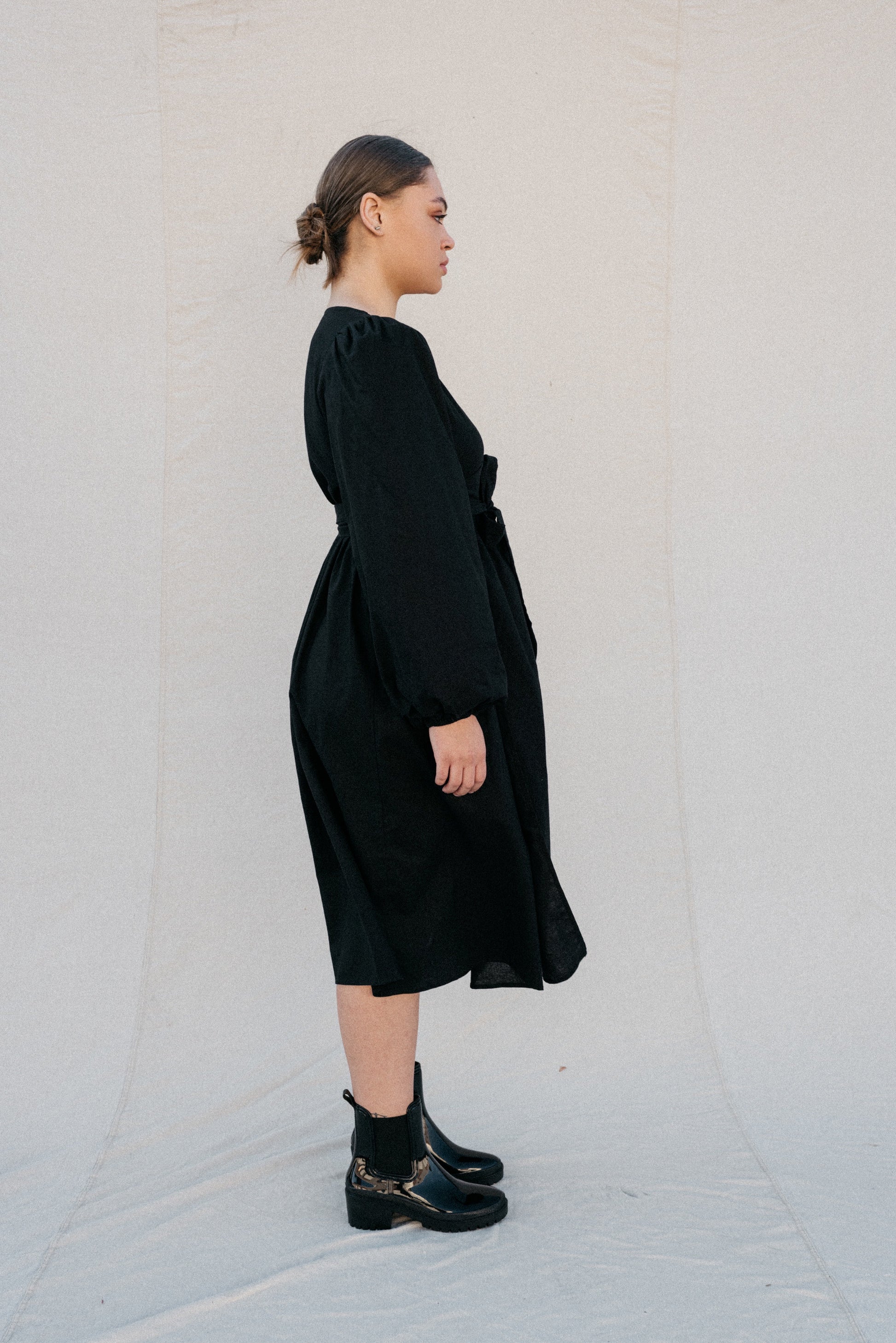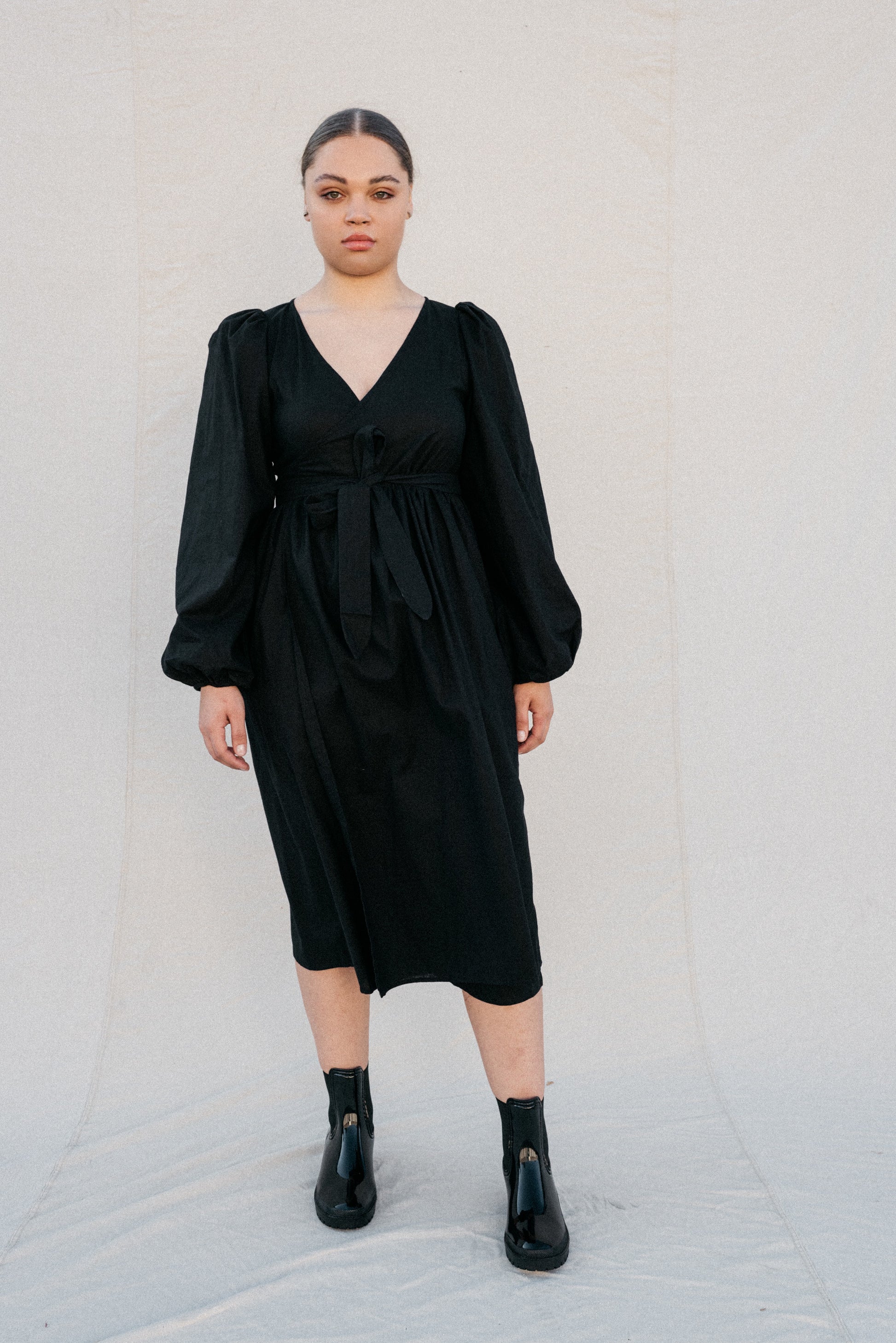 Wrap me up and take me out. The Maude dress in rose is effortlessly chic, comfortable and matched with puffy sleeves. Starring a flattering V-neckline, gathered skirt, with straps that tie around the waist, you can fit her to your liking whatever the occasion.