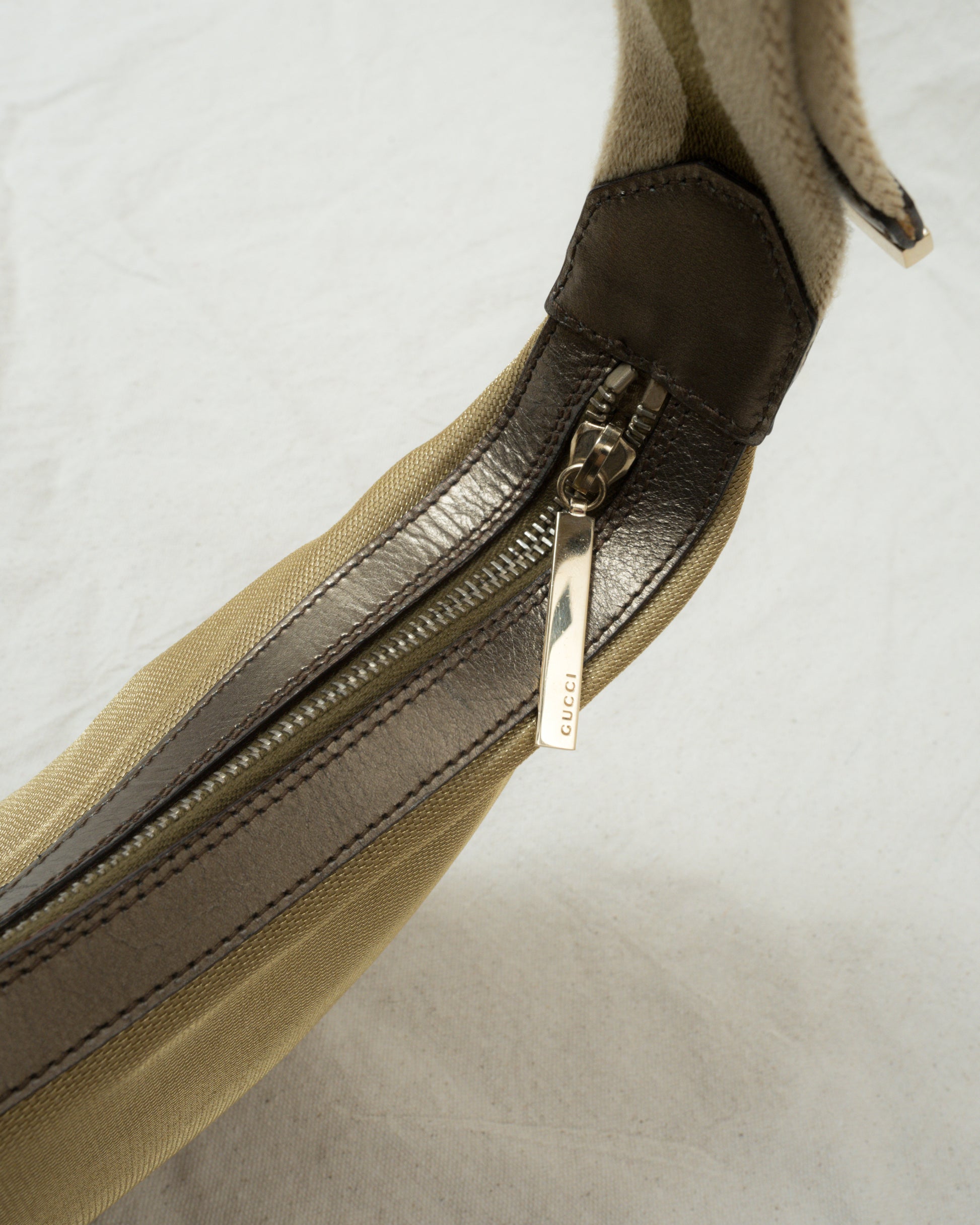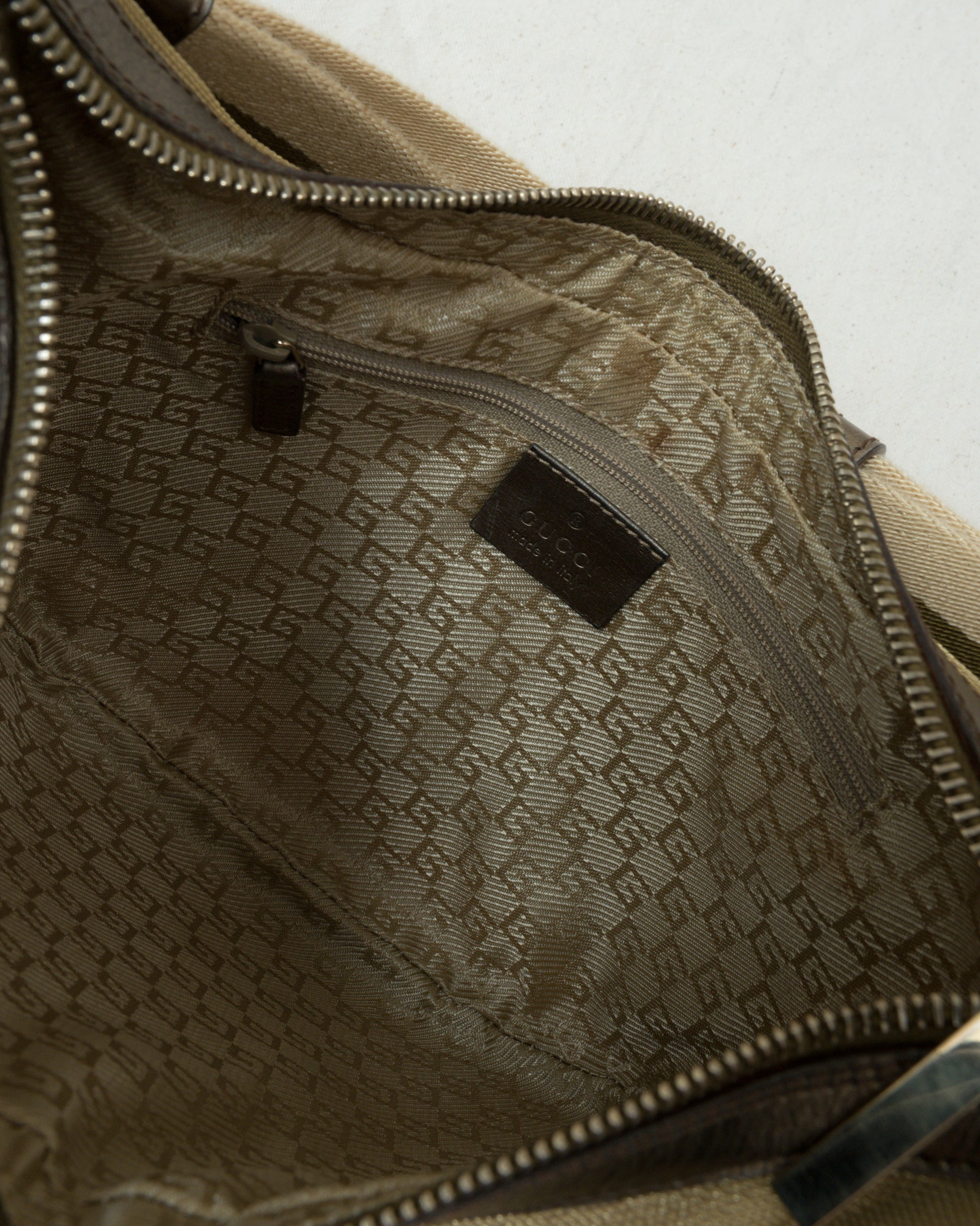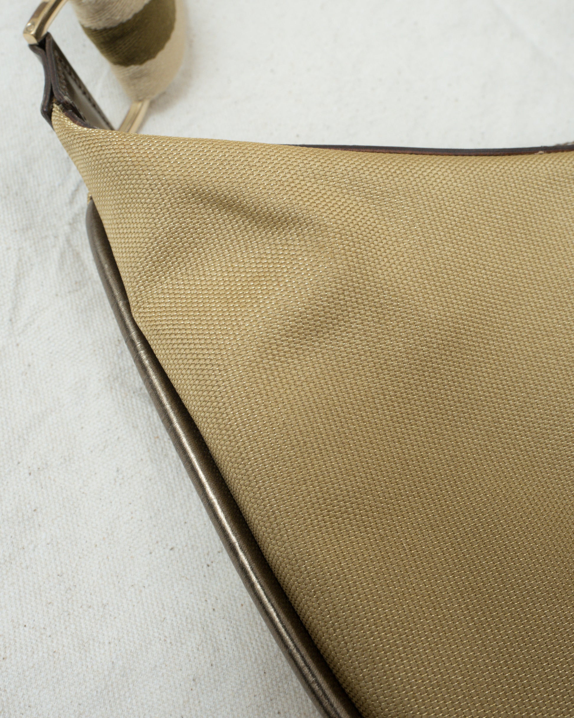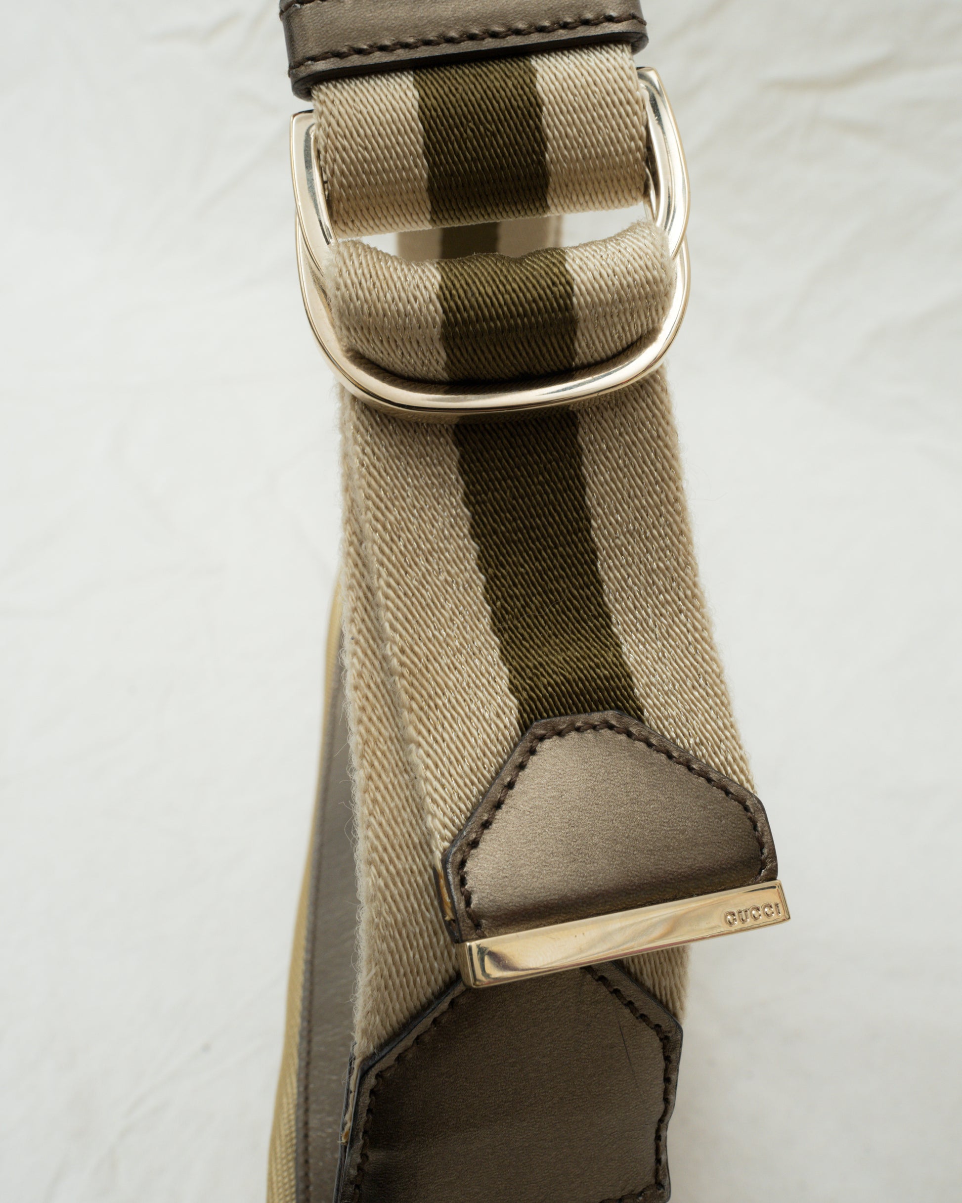 GUCCI metallic gold canvas hobo bag with adjustable shoulder strap. So classic and iconic.