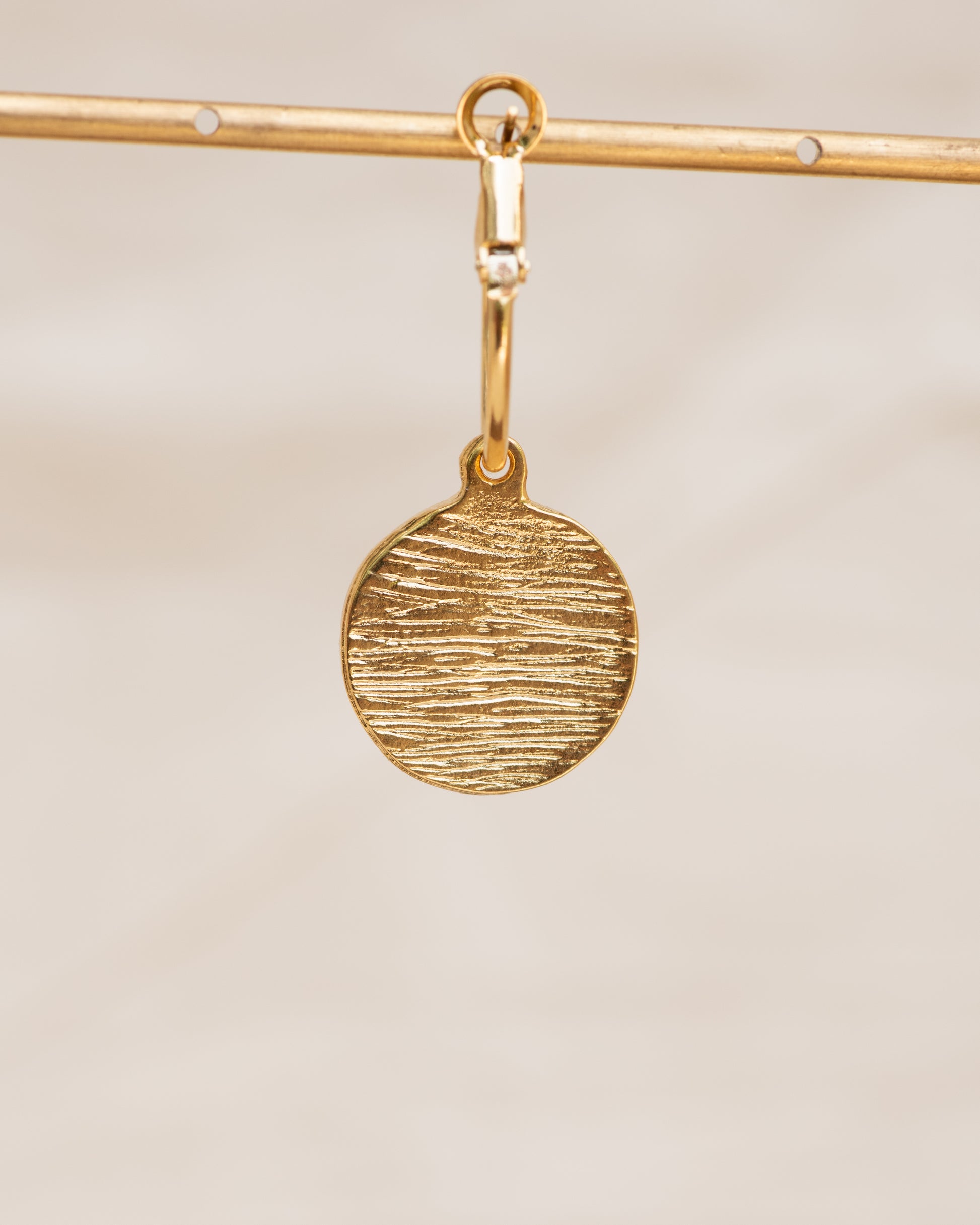 MATERIAL: 24k gold plated brass hoop with 24k gold plated brass + enamel charm (hypoallergenic)