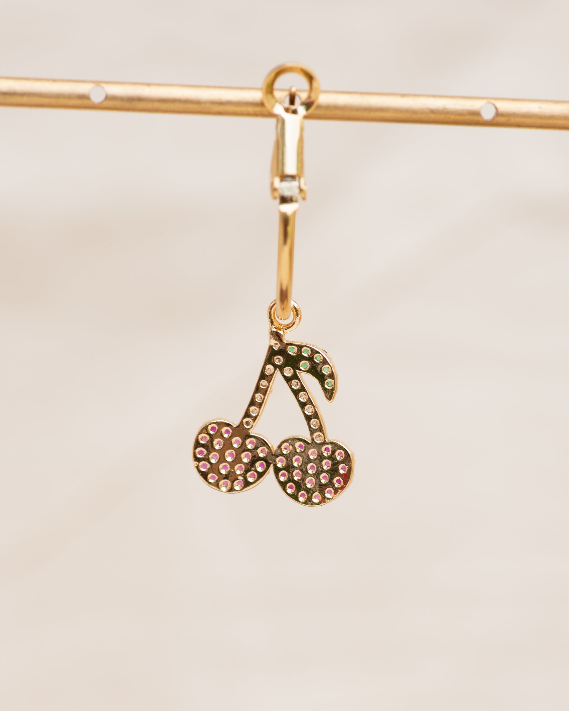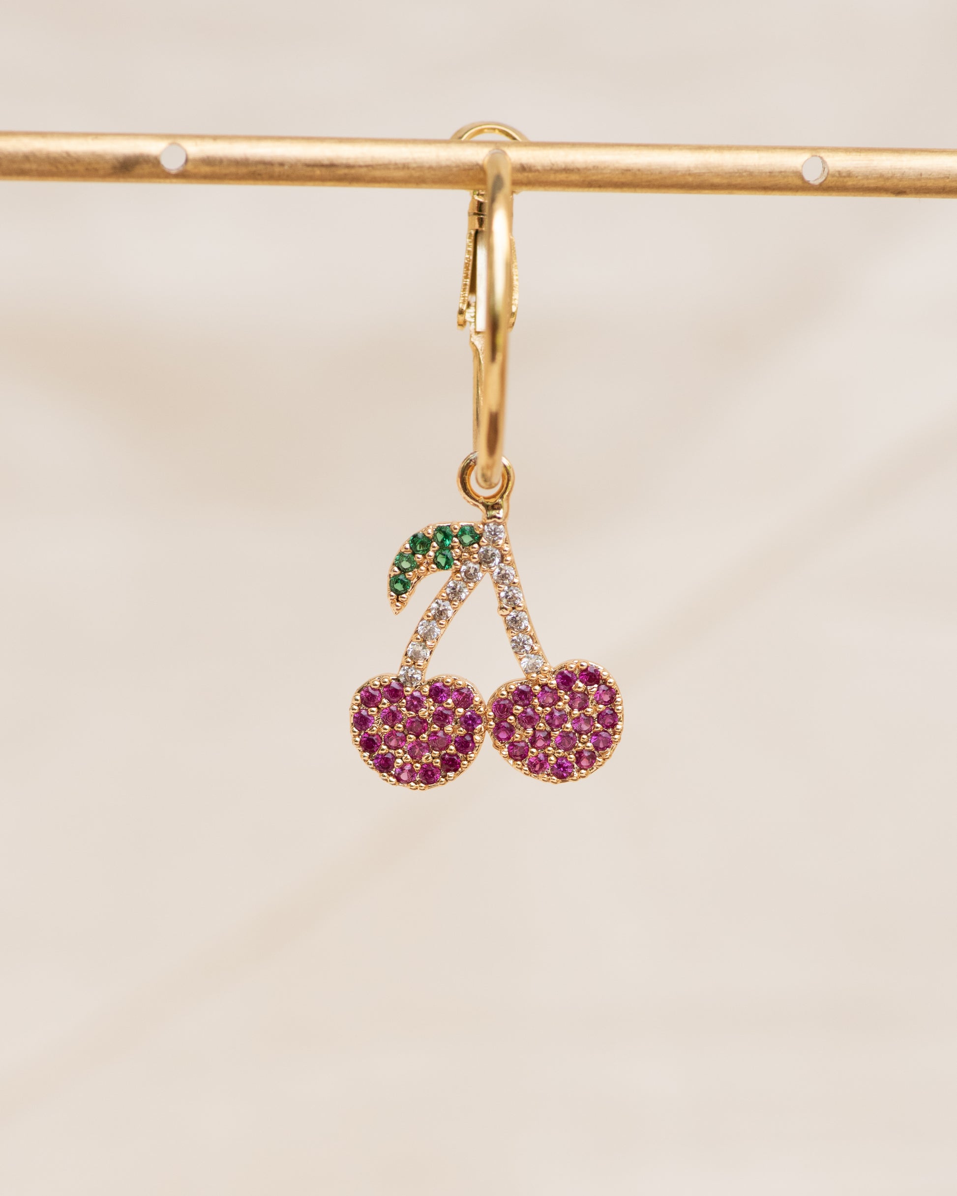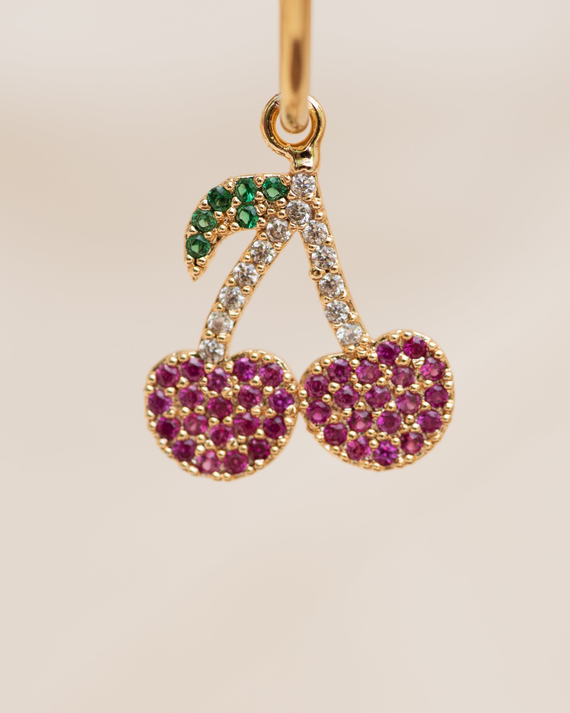 Single Charm Hoop Earring (Blushing Cherry)