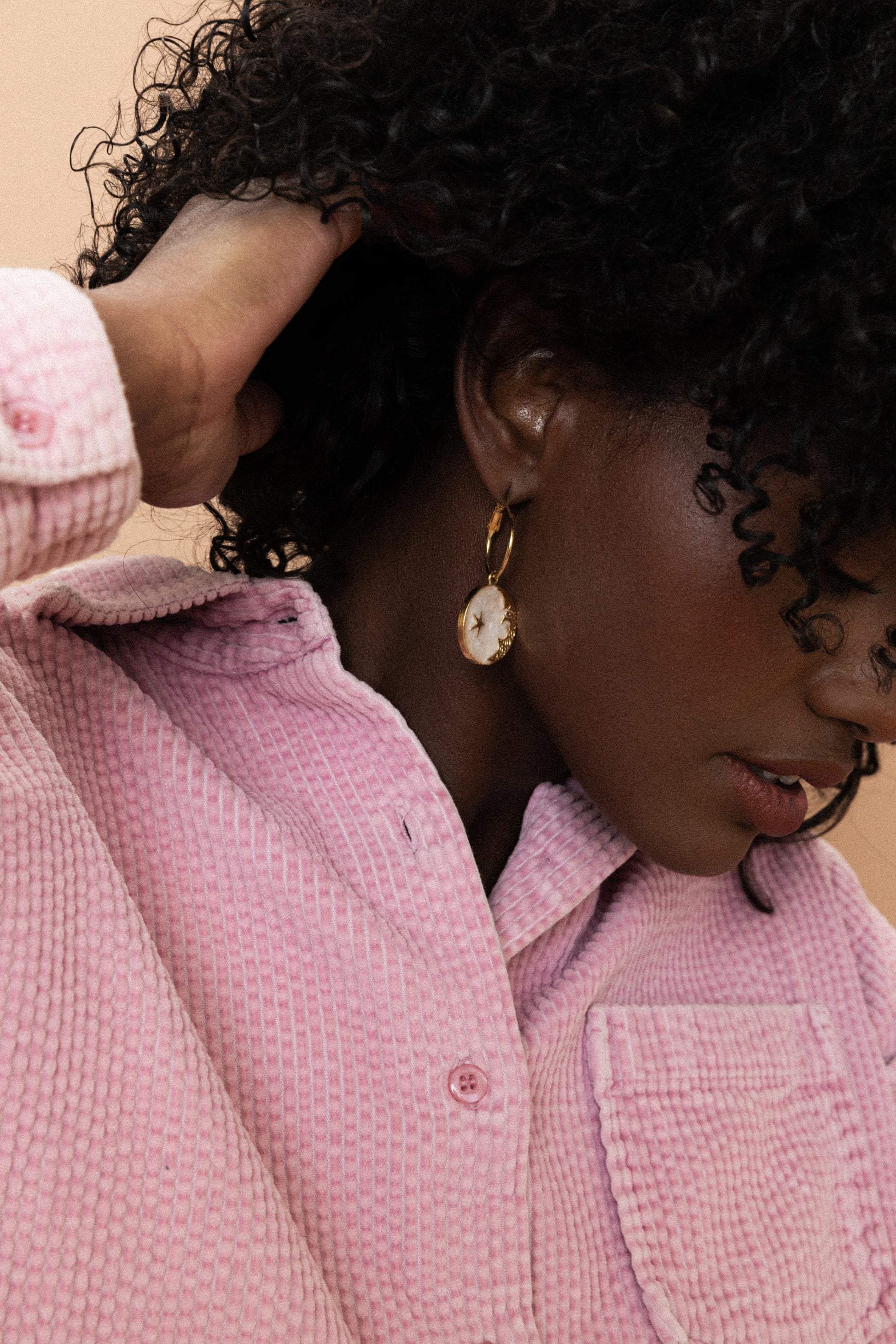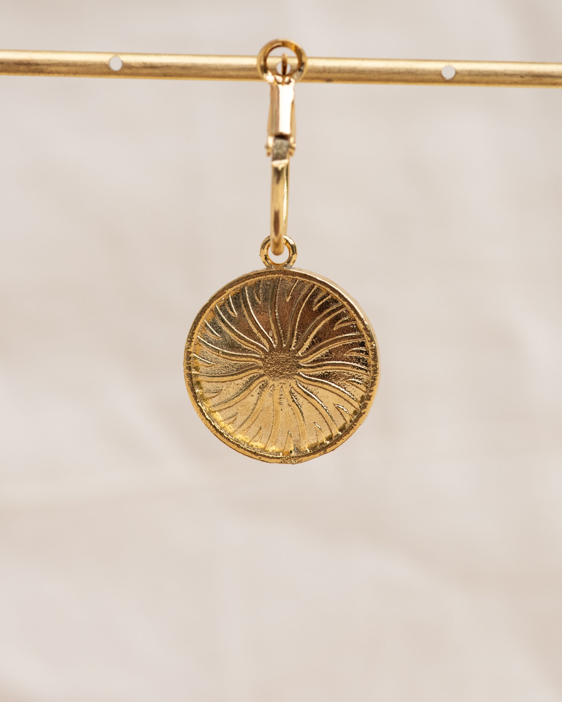 MATERIAL: 24k gold plated brass hoop with 24k gold plated brass + enamel charm (hypoallergenic)