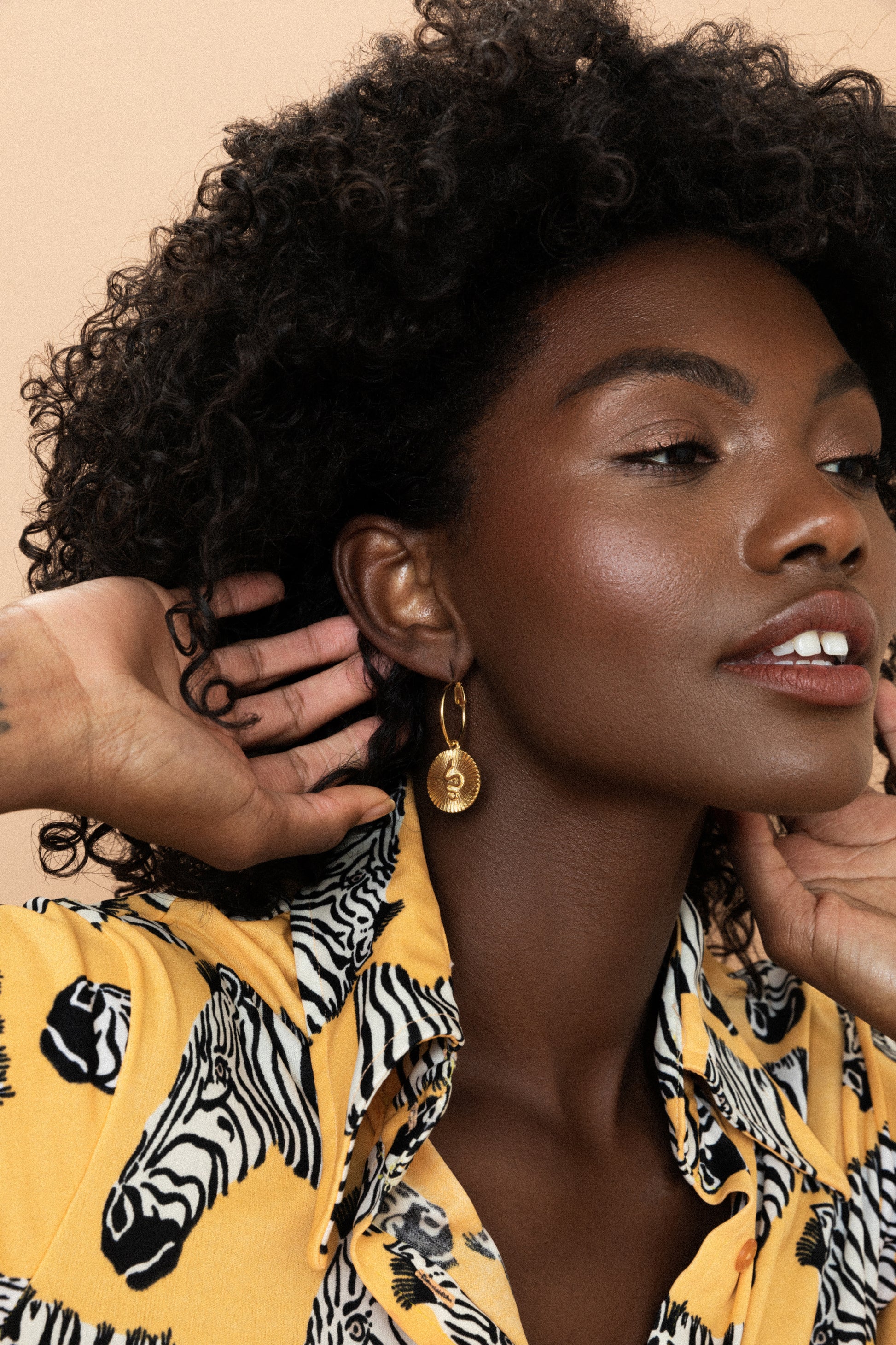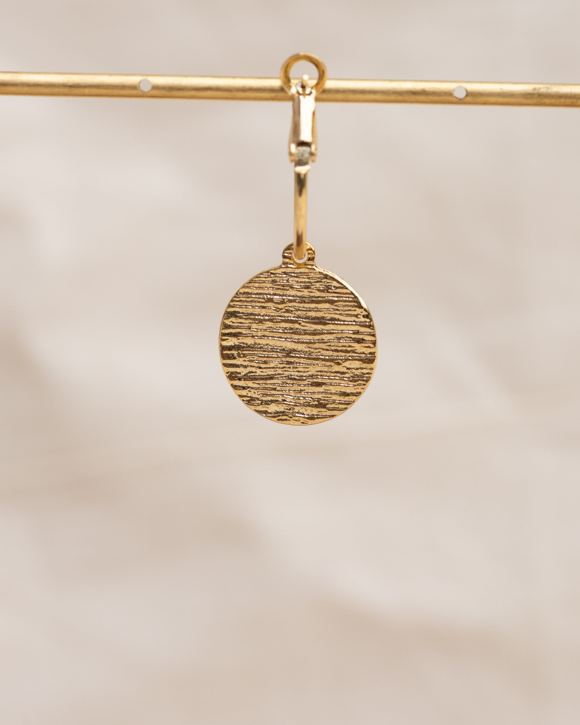 MATERIAL: 24k gold plated brass hoop with 24k gold plated brass charm (hypoallergenic)