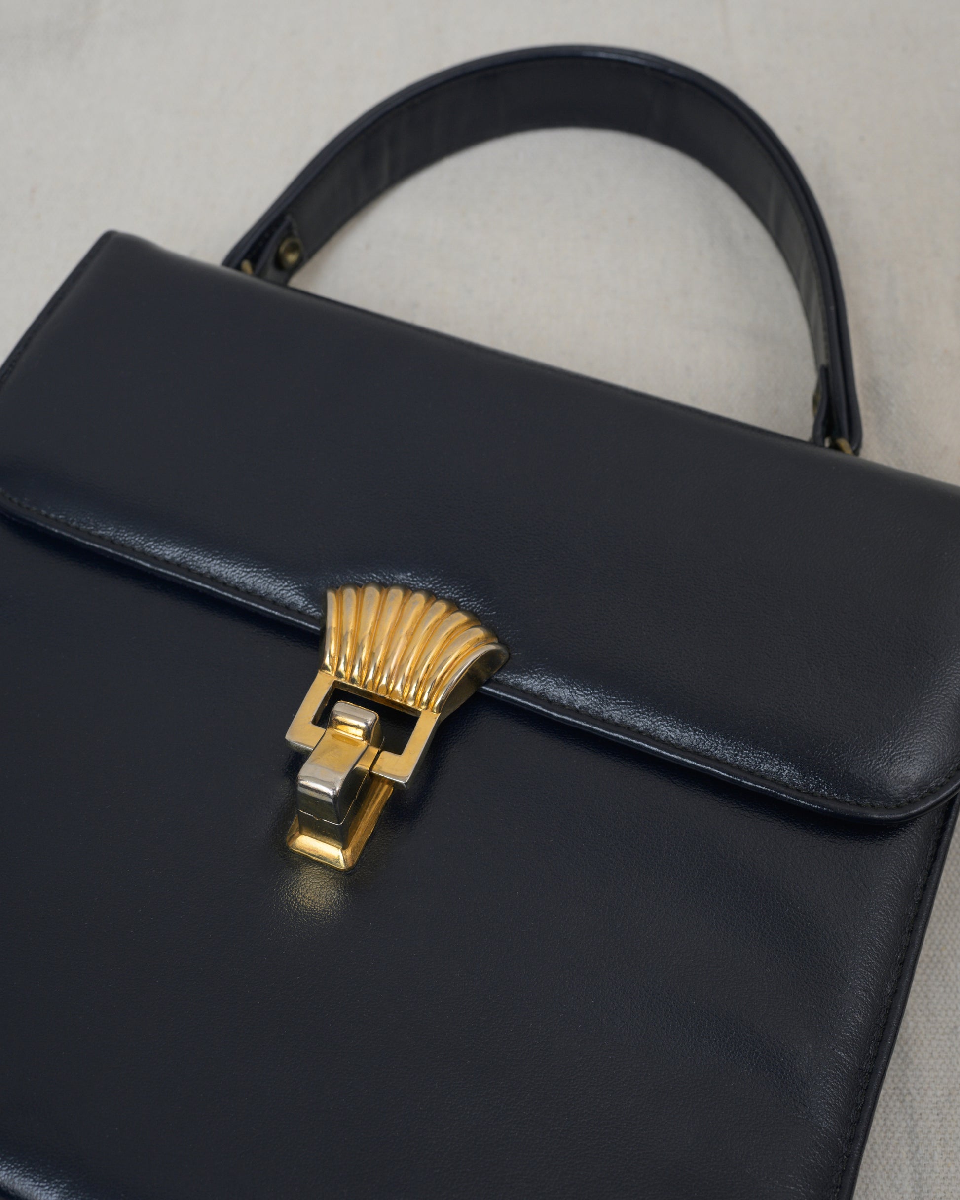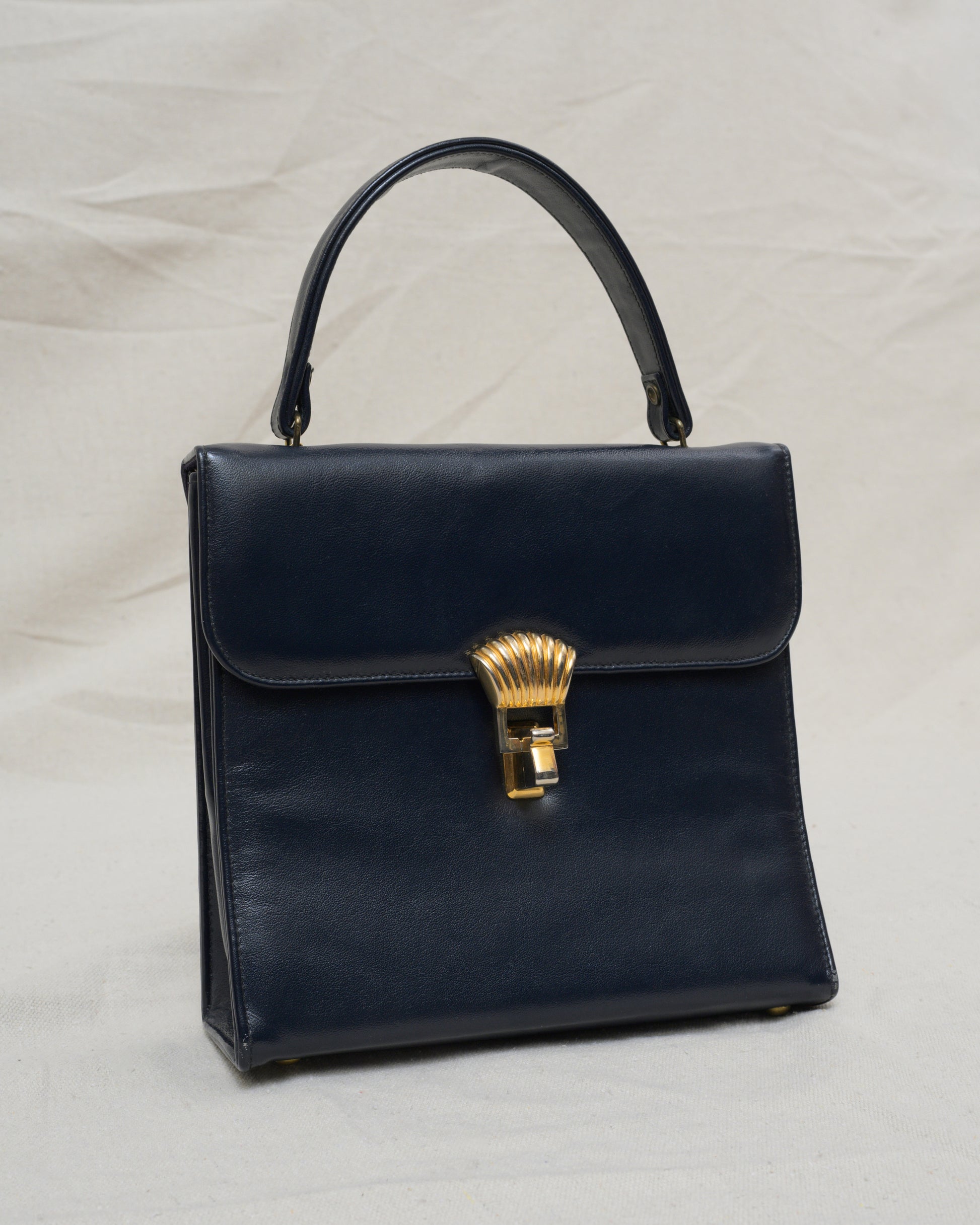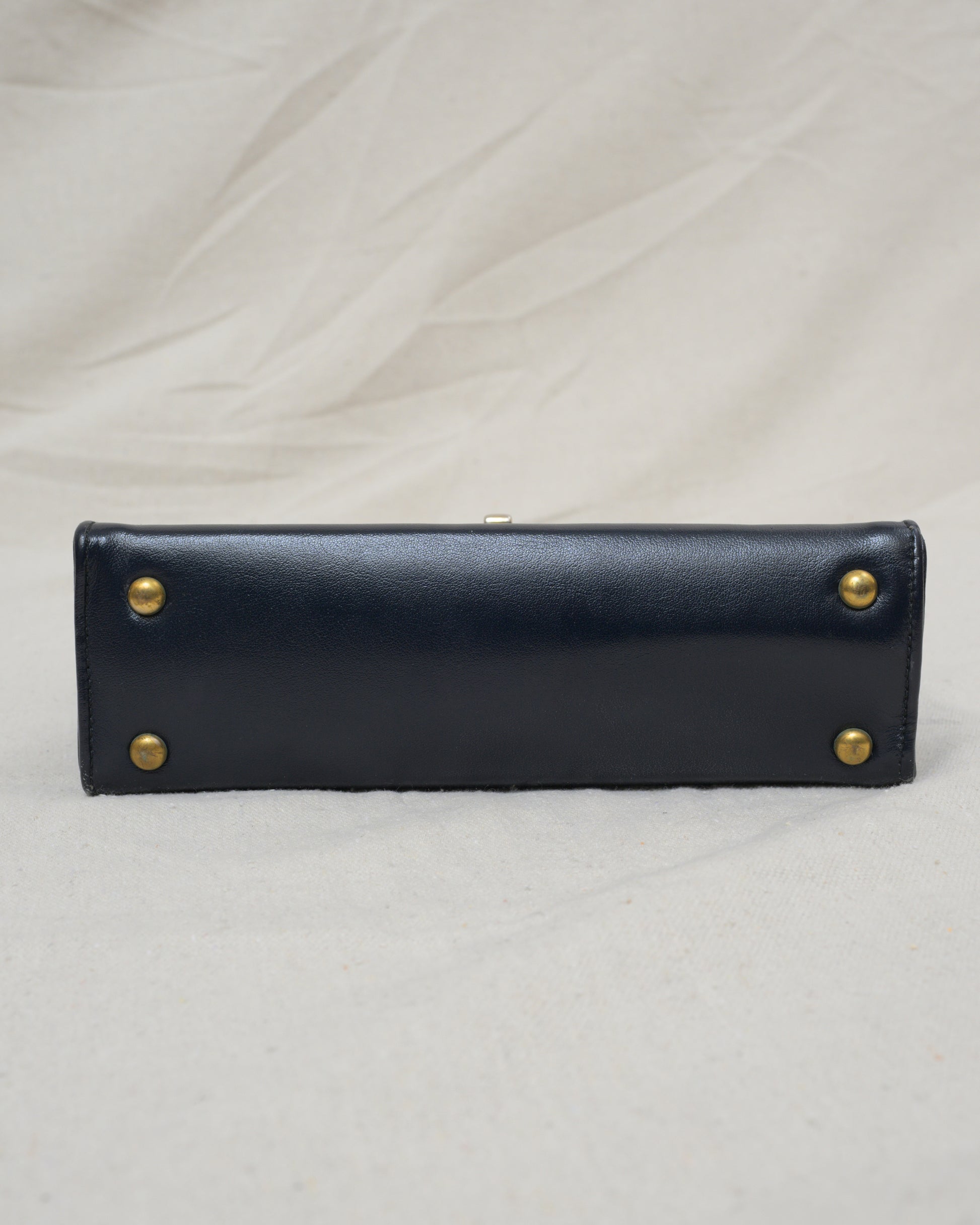 Vintage 1960 navy blue box purse with gold detailing. So iconic.