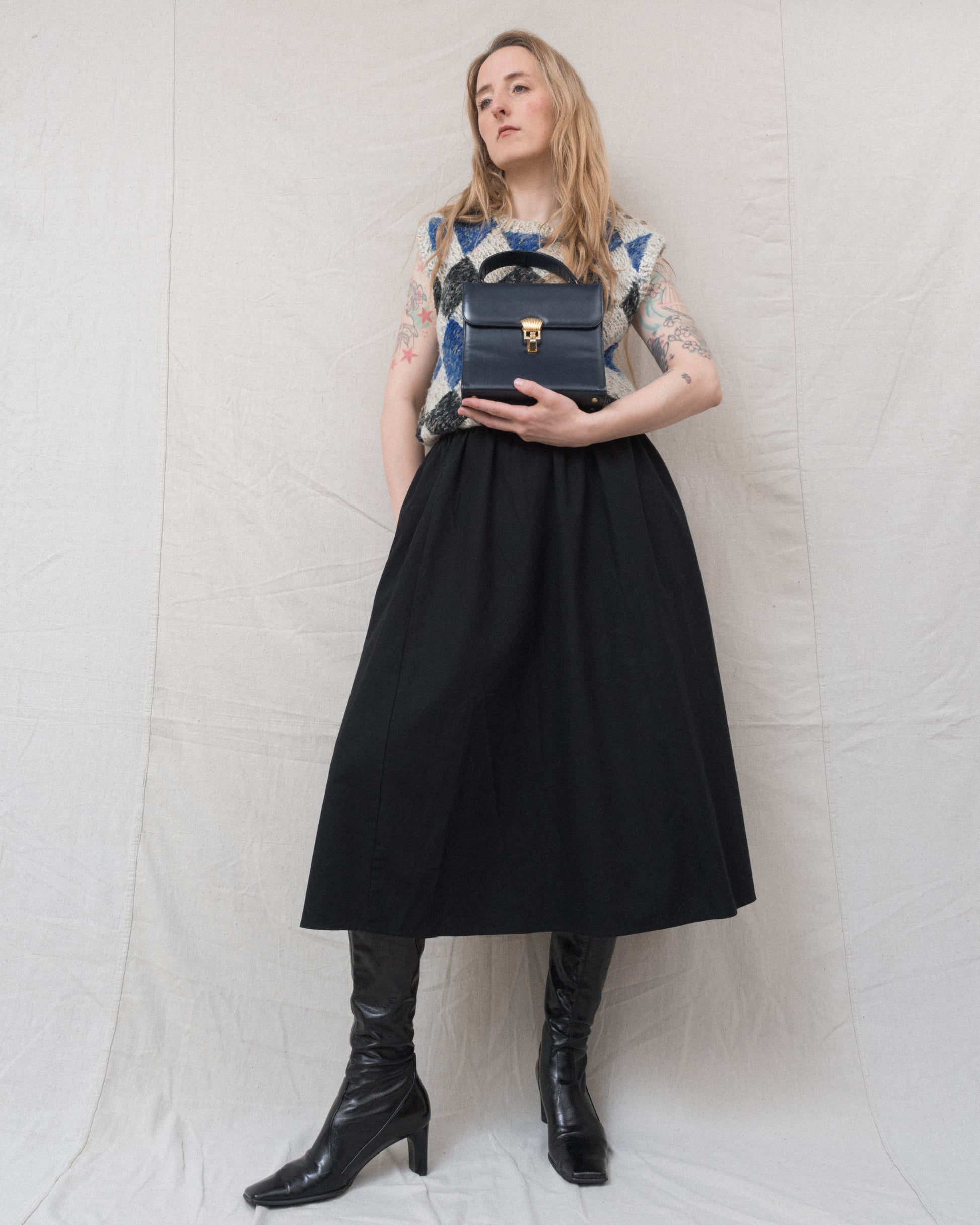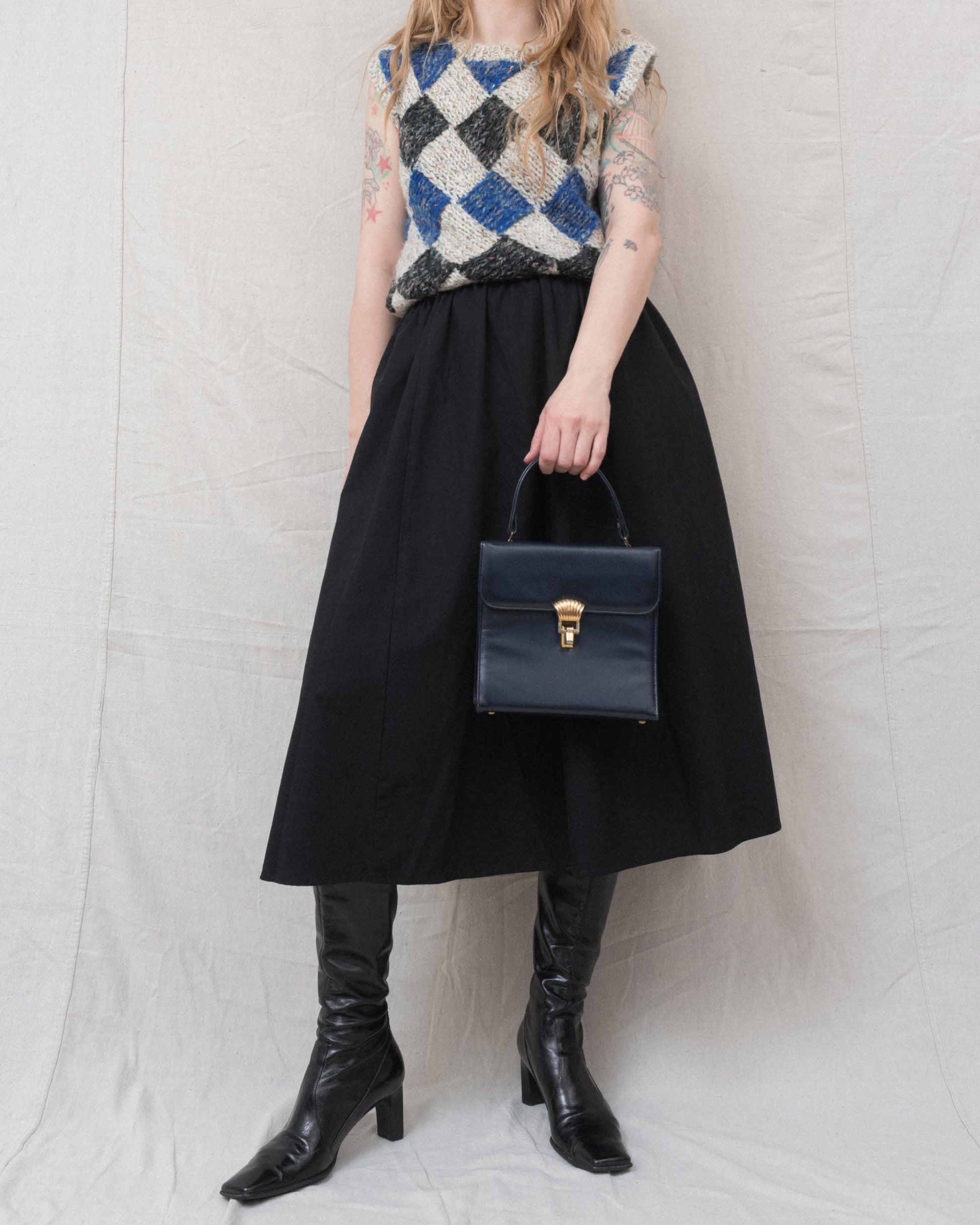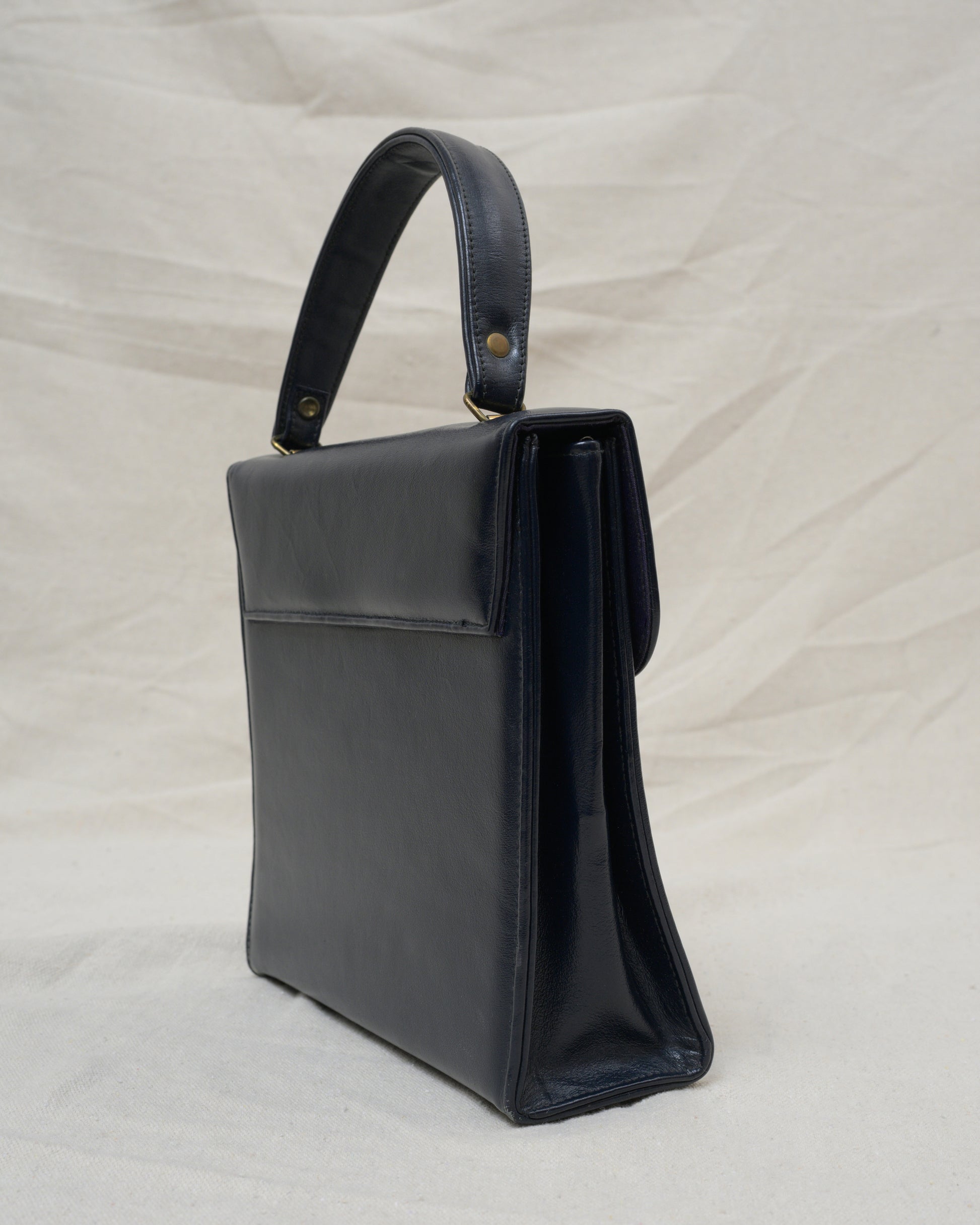 Vintage 1960 navy blue box purse with gold detailing. So iconic.