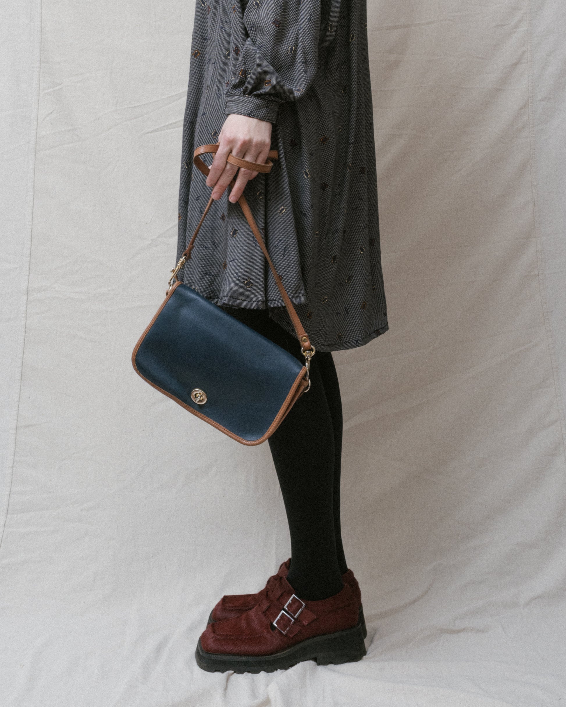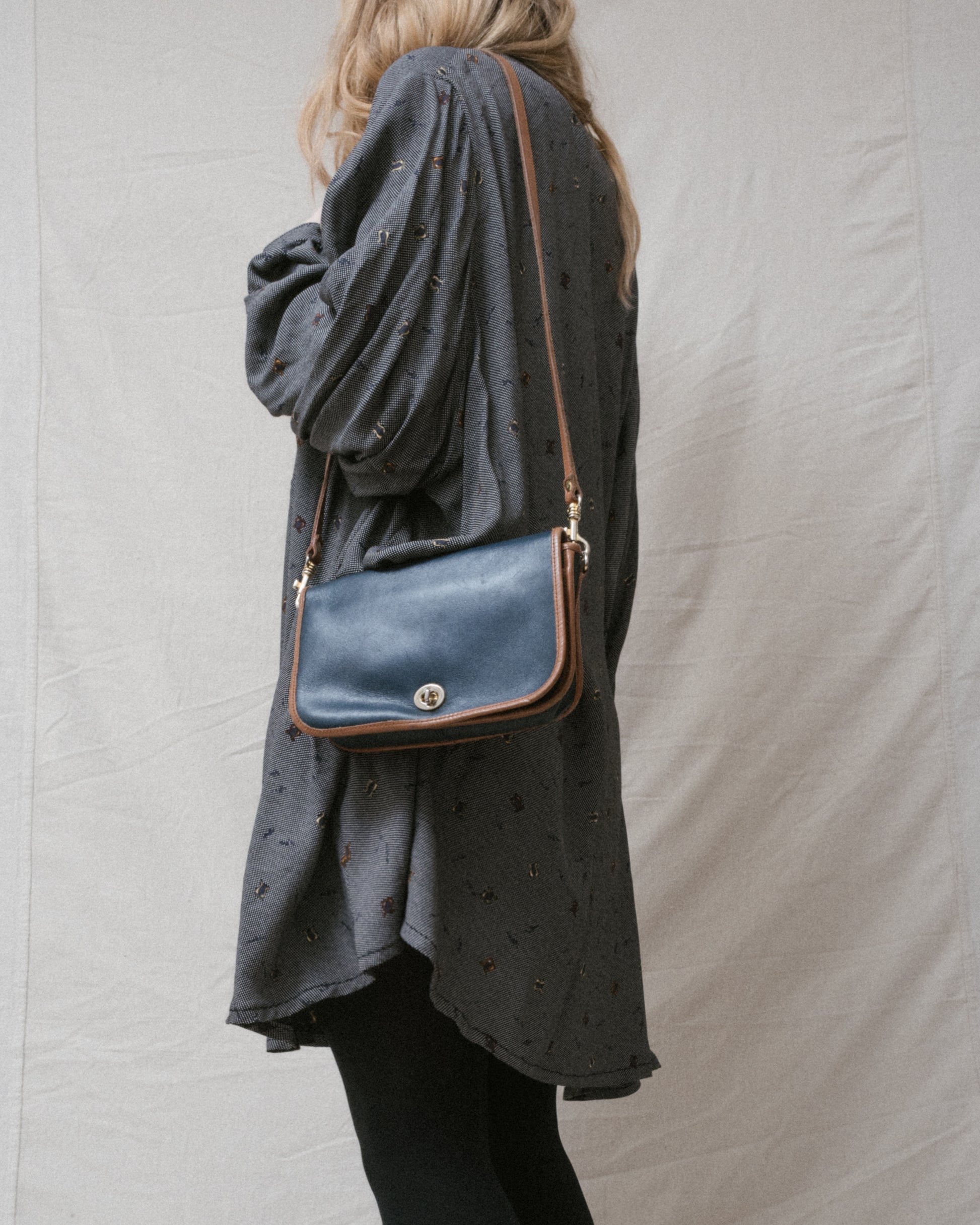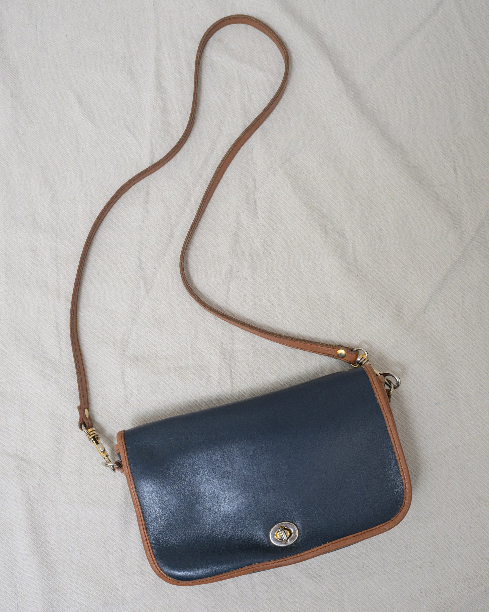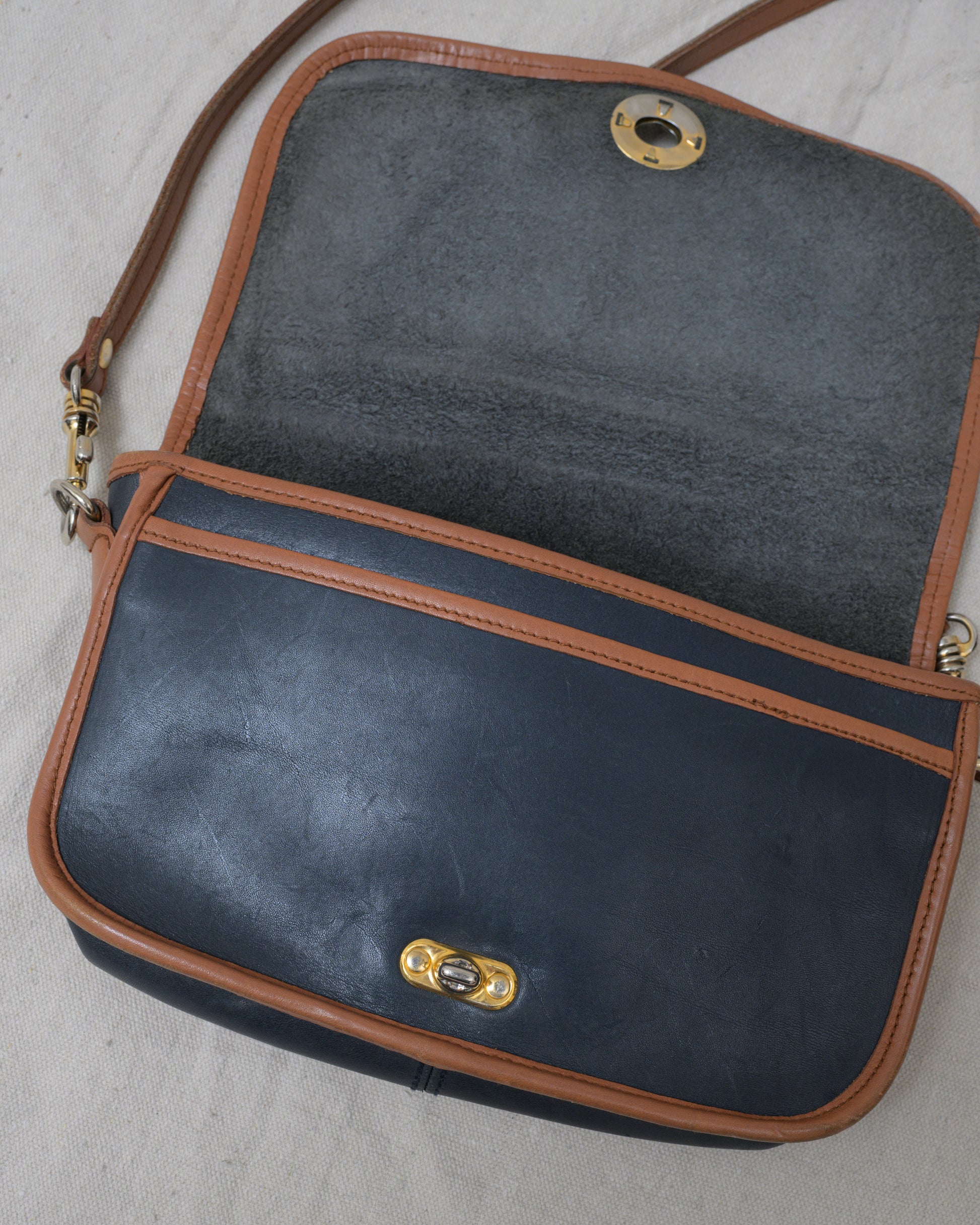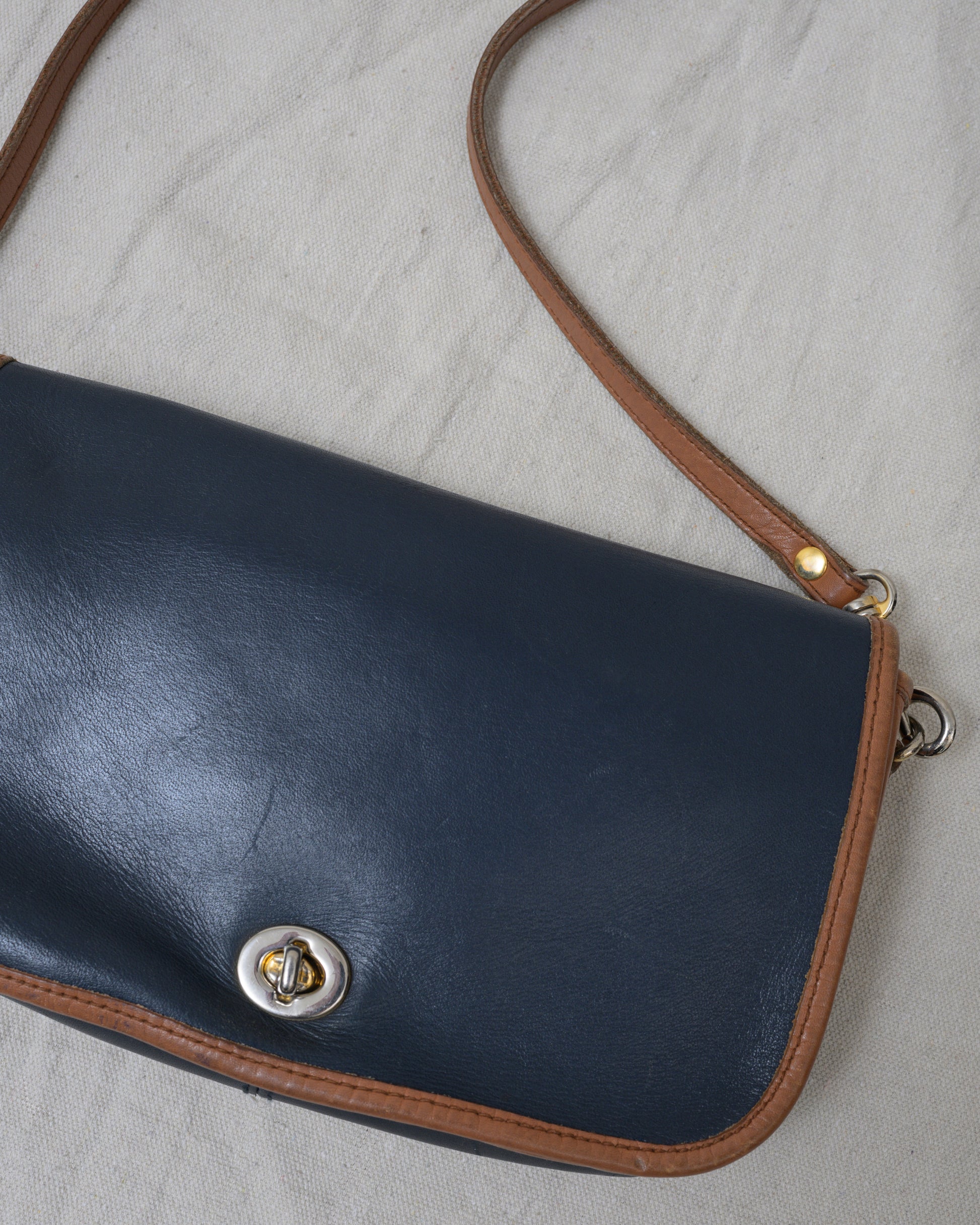 Vintage Navy + Tan Leather Bag