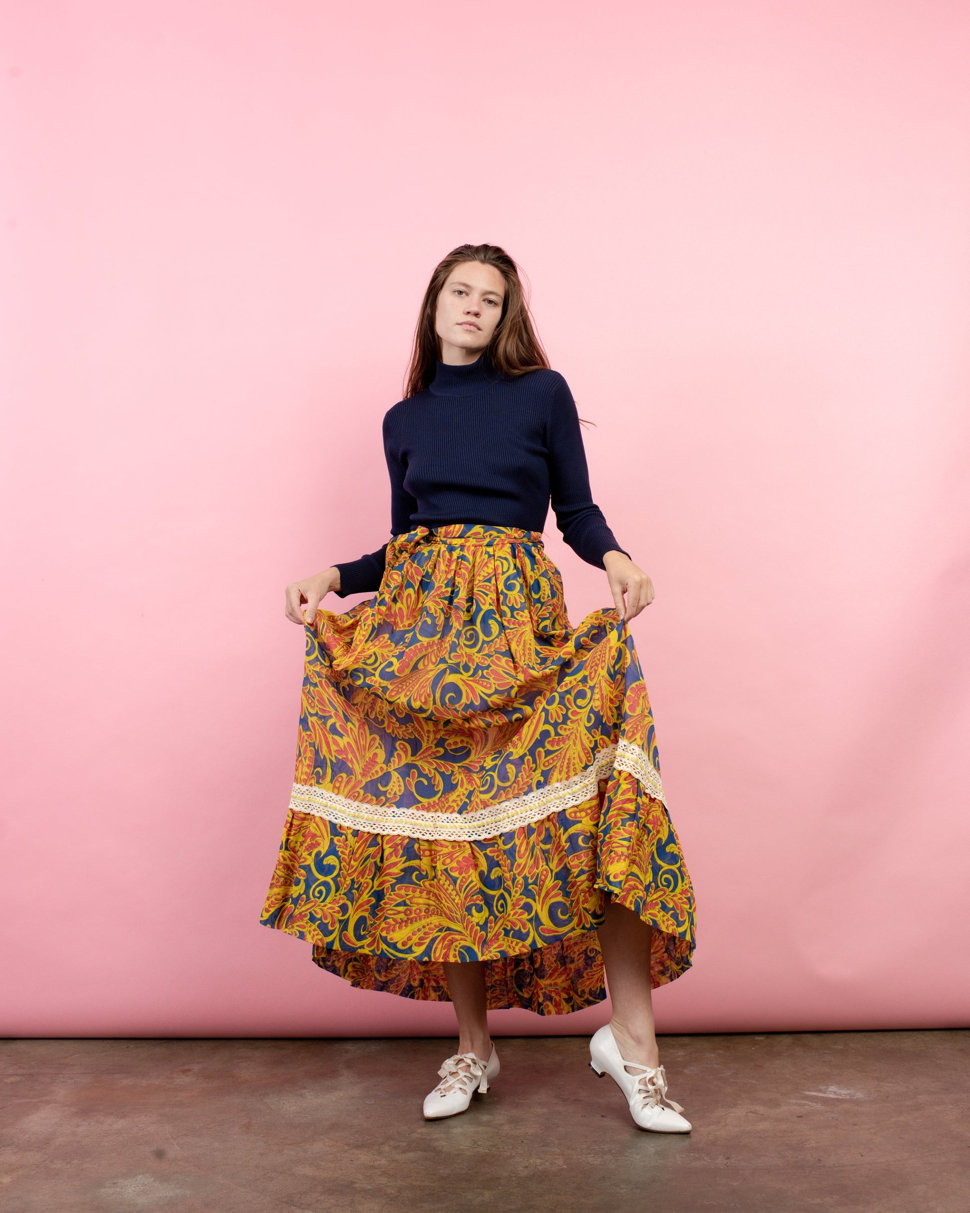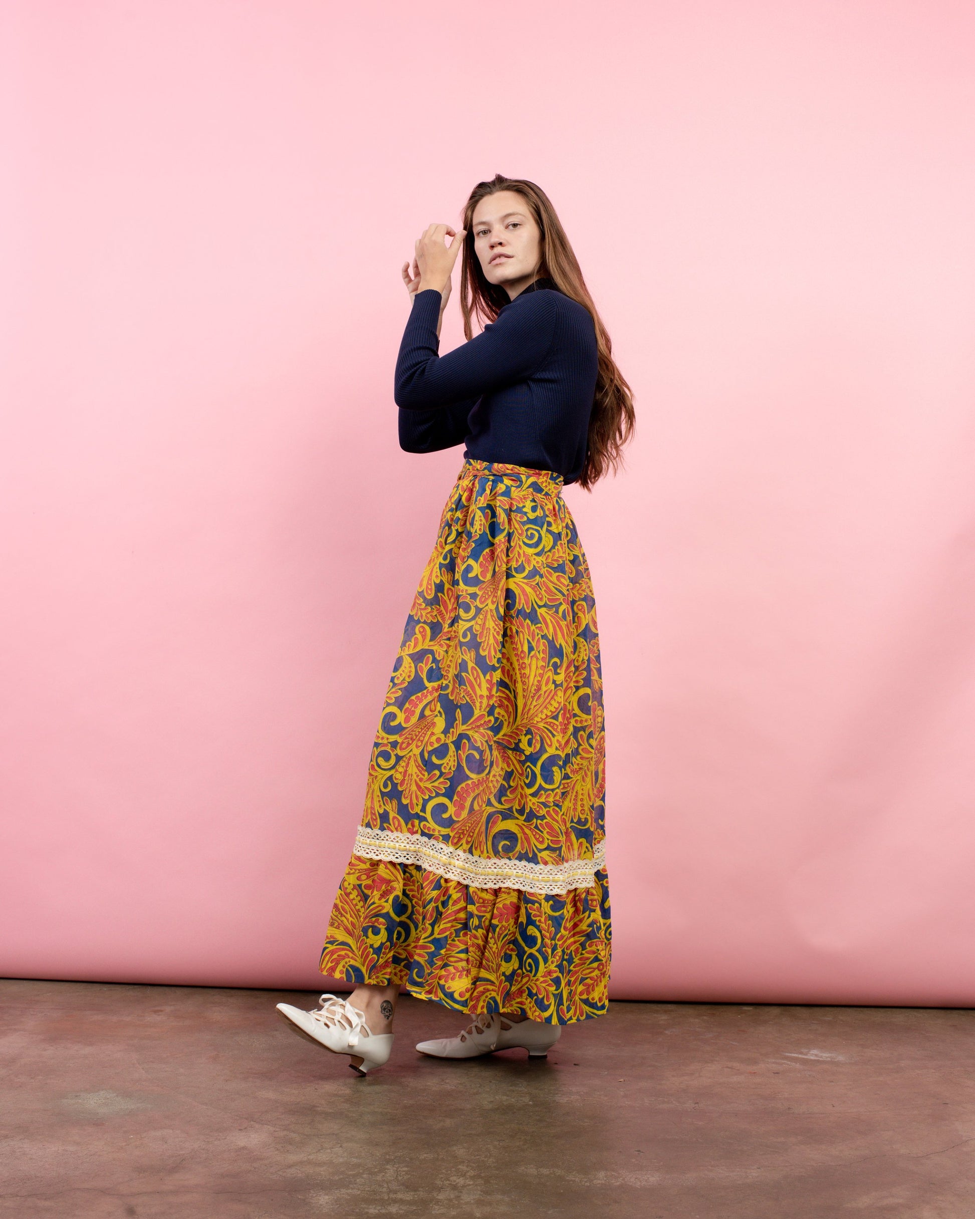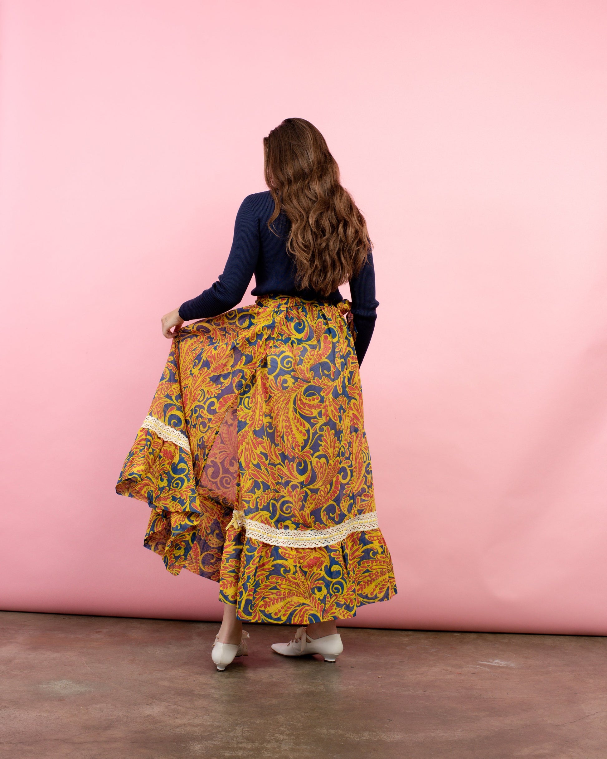 Vintage colorful floral peasant maxi wrap skirt